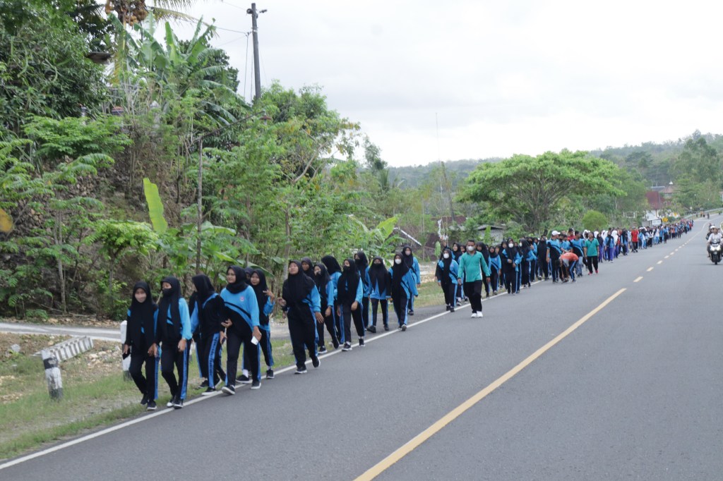 Pemilihan ketua OSIS SMK negeri 1 Pracimantoro pada pagi hari sebelum acara tersebut di laksanakan jalan sehat semua siswa dan guru.